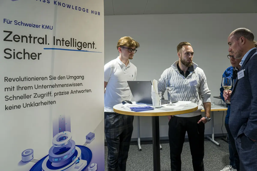Ein besonderes Highlight war die Live-Demo des SWISS KNOWLEDGE HUB – eine KI-Lösung, die den Umgang mit Unternehmenswissen revolutioniert: zentral, intelligent und sicher.